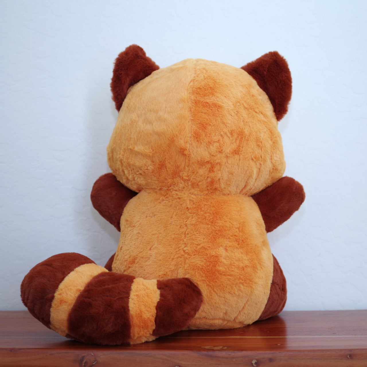 A super adorable red panda with soft, fluffy fur in a vibrant shade of rusty red. Look at that tail!! You won't be able to resist giving it a squeeze. With that smile, it sure can bring joy to anyone who holds it.